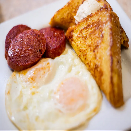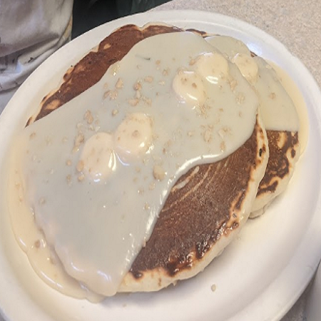 Our pancake batter is made from scratch, with a very special blend of ingredients, making these pancakes some of the best you will ever taste. Served with our freshly whipped maple butter.