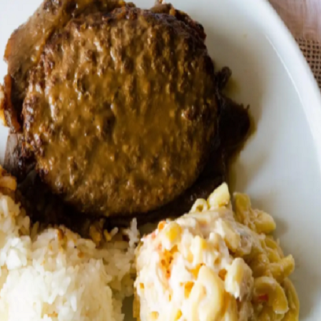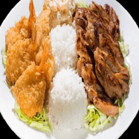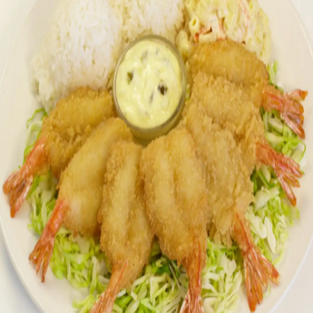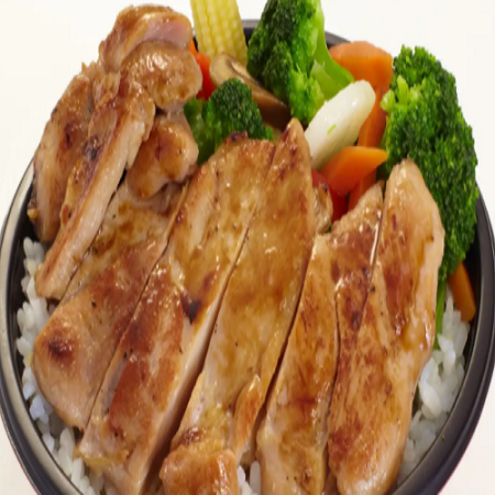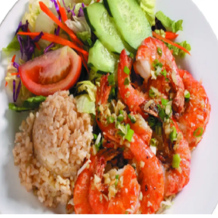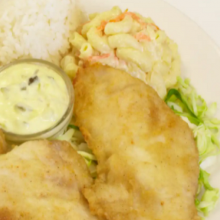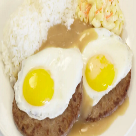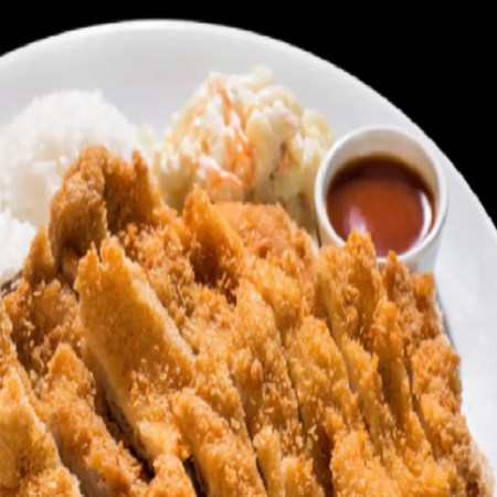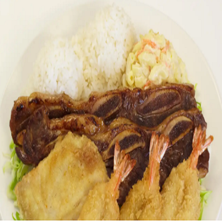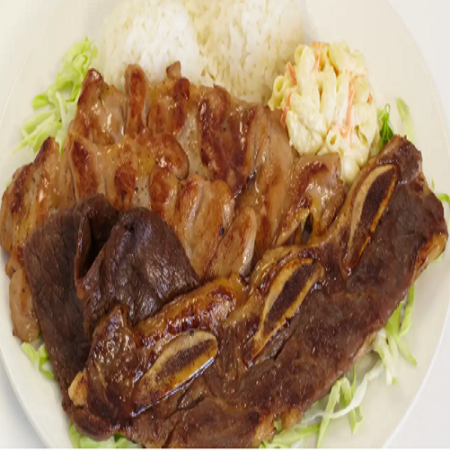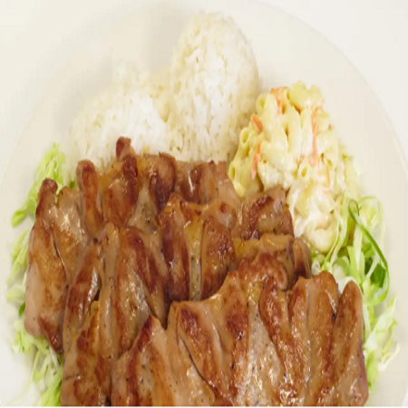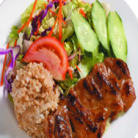 Mini: One scoop of white rice or brown rice and choice of macaroni salad or tossed green salad. Regular: Two scoops of white rice or brown rice and choice of macaroni salad or tossed green salad.