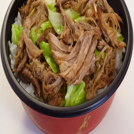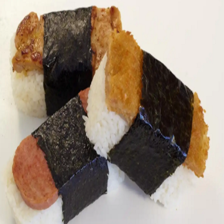 A block of rice with your choice of meat wrapped in flavored dried seaweed.