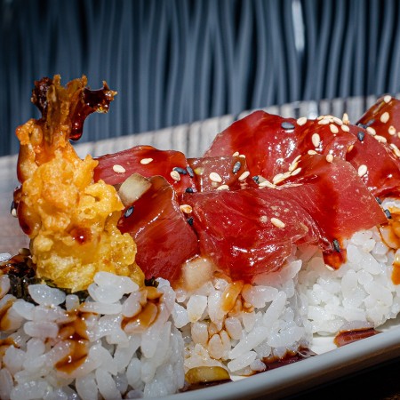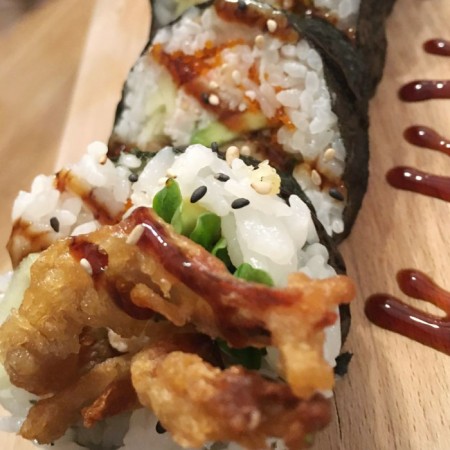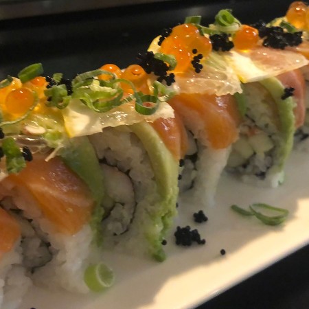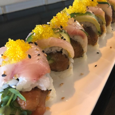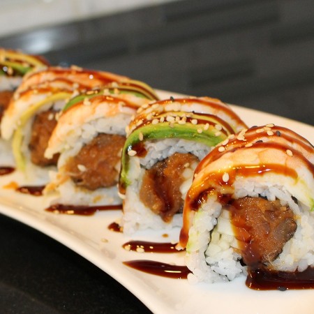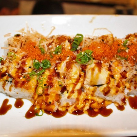 Baked rolls are traditional rolls topped or wrapped in other fishes, that are baked for a short amount of time then topped with various toppings.