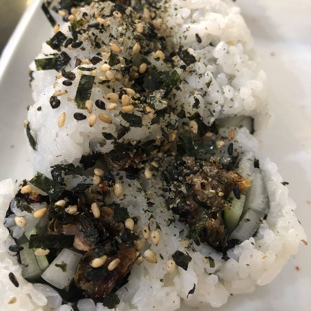 One of the most popular makizushi varieties are the thin hosomaki rolls. They consist of traditional roasted nori sheets that are layered with vinegar rice, filled with just one ingredient, then shaped into thin rolls. Even though they appear in numerous versions, the most famous are the tekkamaki tuna roll and the refreshing kappamaki cucumber roll. Cut into small bite-sized pieces and complemented with wasabi, pickled ginger, and soy sauce, hosomaki makes a perfect, healthy, nutritious snack