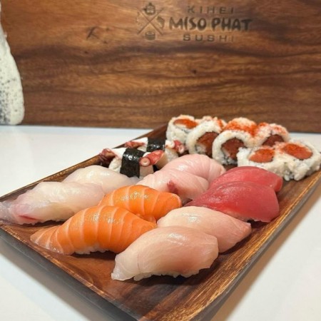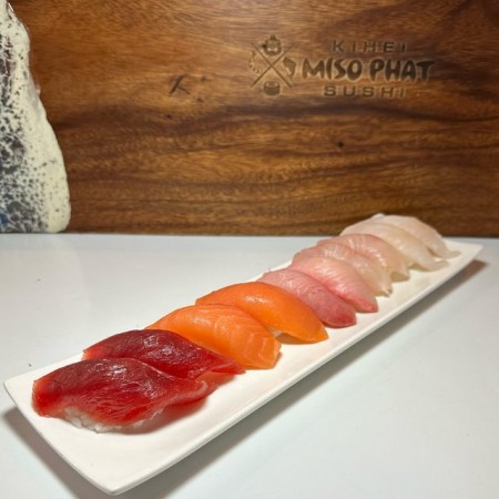 Nigiri sushi is a traditional Japanese type of nigiri sushi. It consists of hand-pressed sushi rice that’s topped with slices of tuna, other fishes like Hamachi or Sake (Salmon) as well as different types of fish roes (Tobiko, Masago, Ikura), or sweet egg.