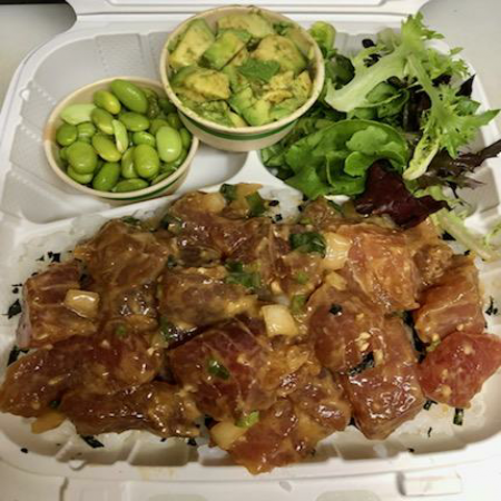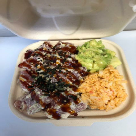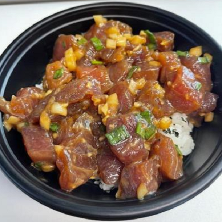 Choose your favorite! Comes with Sushi Rice and Two Sides and choice of Mac Salad or Toss Salad